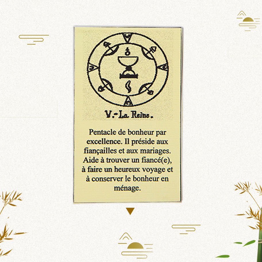 Pentacle de bonheur par excellence. Il préside aux fiançailles et aux mariages. Aide à trouver un fiancé(e), à faire un heureux voyage et à conserver le bonheur en ménage....